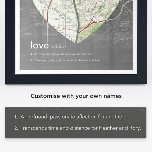 Joined Map Heart – Personalised Dictionary Definition Map Art - Love