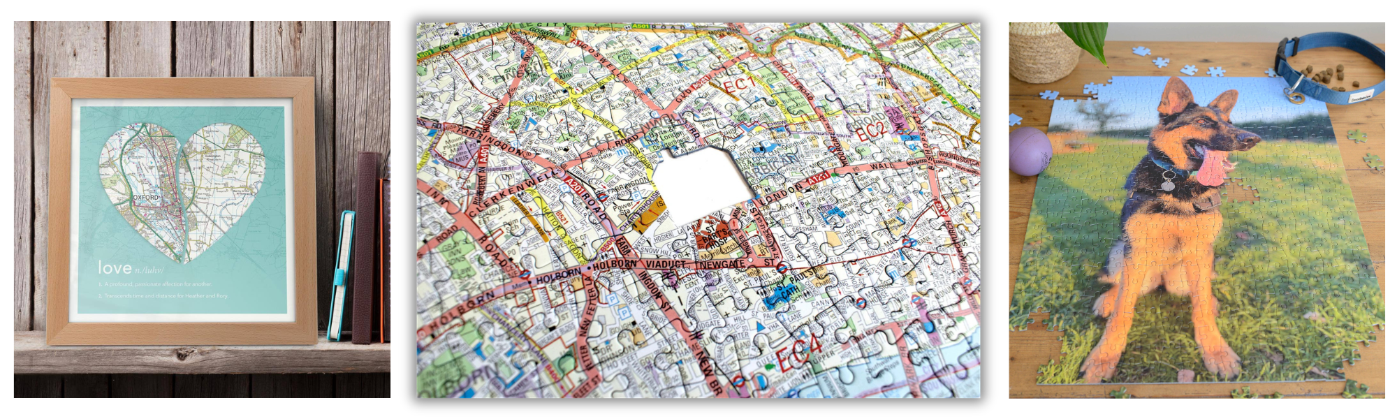 Create personalised puzzles and framed wall art from meaningful places and favourite photos.